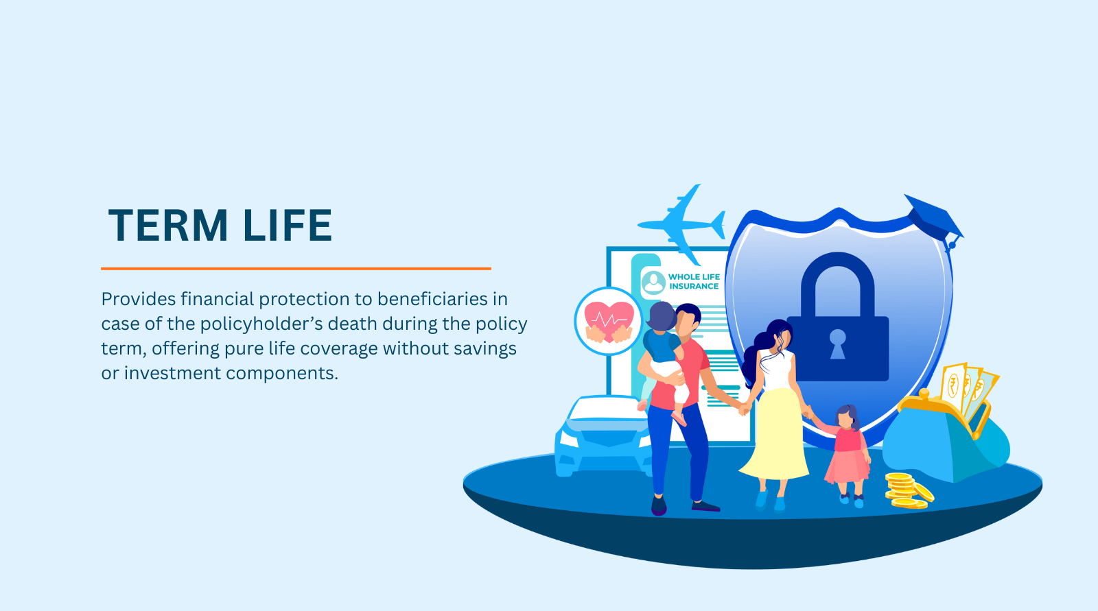 Term insurance is a pure life insurance policy that provides coverage for a fixed duration. If the insured passes away during this period, the nominee receives a lump sum amount. It offers high life cover at an affordable premium, making it one of the most cost-effective ways to ensure financial security for your loved ones.